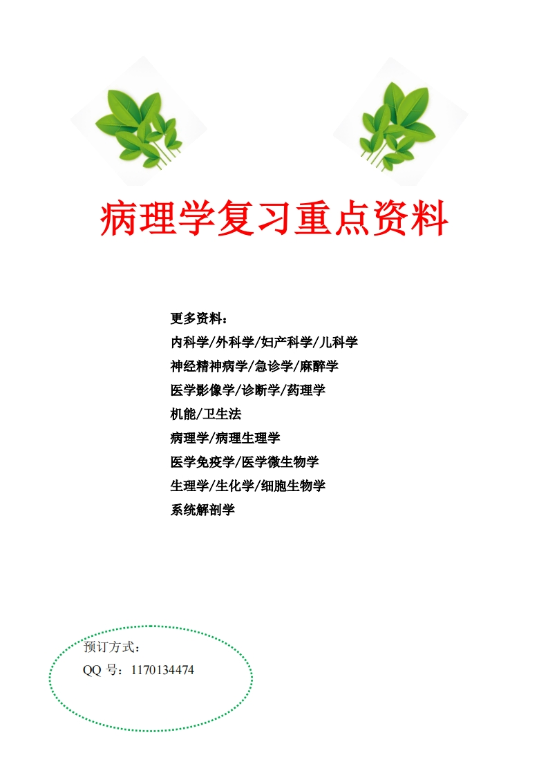 16.病理学20页qweryou25年9月18日发布关注私信0.47MB20页01279 第1页 / 共20页 第2页 / 共20页 该文档为免费文档,您可直接下载完整版进行阅读 © 版权声明文章版权归作者所有,转载请注明来源,未经允许请勿转载。本站内容均来自用户投稿或网络公开收集,本站只做展示,不对内容真实性负责。THE END医学期末考试 文本预览 病理学复习重点资料更多资料:内科学/外科学/妇产科学/儿科学神经精神病学/急诊学/麻醉学医学影像学/诊断学/药理学机能/卫生法病理学/病理生理学医学免疫学/医学微生物学生理学/生化学/细胞生物学系统解剖学预订方式:QQ号:1170134474 查看更多 收起部分 喜欢就支持一下吧点赞9 分享QQ空间微博QQ好友海报分享复制链接收藏