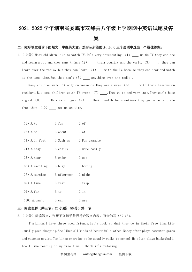 2021-2022学年湖南省娄底市双峰县八年级上学期期中英语试题及答案(Word版)qweryou25年12月18日发布关注私信028415 第1页 / 共11页 该文档为免费文档,您可直接下载完整版进行阅读 © 版权声明文章版权归作者所有,转载请注明来源,未经允许请勿转载。本站内容均来自用户投稿或网络公开收集,本站只做展示,不对内容真实性负责。THE END考试考证 喜欢就支持一下吧点赞15 分享QQ空间微博QQ好友海报分享复制链接收藏