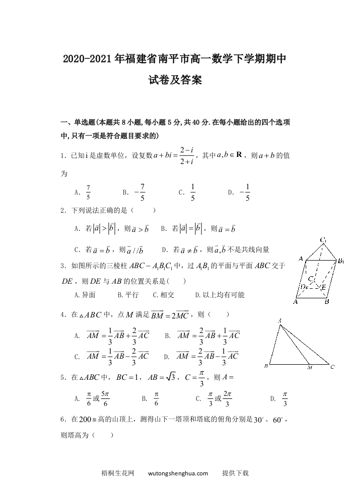2020-2021年福建省南平市高一数学下学期期中试卷及答案(Word版)qweryou25年12月19日发布关注私信028012 第1页 / 共11页 该文档为免费文档,您可直接下载完整版进行阅读 © 版权声明文章版权归作者所有,转载请注明来源,未经允许请勿转载。本站内容均来自用户投稿或网络公开收集,本站只做展示,不对内容真实性负责。THE END考试考证 喜欢就支持一下吧点赞12 分享QQ空间微博QQ好友海报分享复制链接收藏