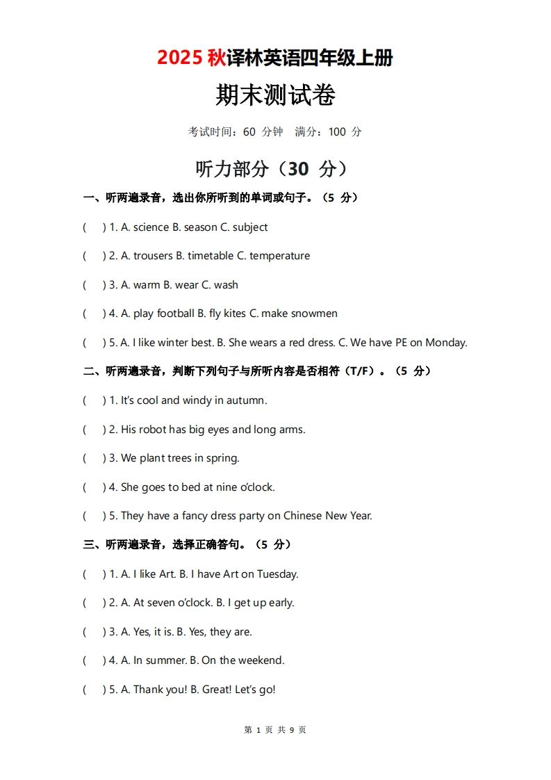 2025年秋译林版四上英语期末测试卷(无音频)qweryou25年12月19日发布关注私信07610 第1页 / 共9页 该文档为免费文档,您可直接下载完整版进行阅读 © 版权声明文章版权归作者所有,转载请注明来源,未经允许请勿转载。本站内容均来自用户投稿或网络公开收集,本站只做展示,不对内容真实性负责。THE END考试考证 喜欢就支持一下吧点赞10 分享QQ空间微博QQ好友海报分享复制链接收藏