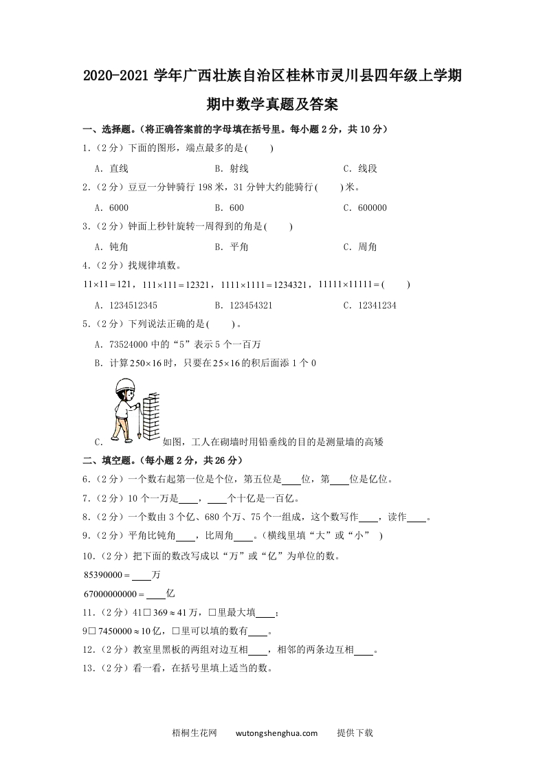 2020-2021学年广西壮族自治区桂林市灵川县四年级上学期期中数学真题及答案(Word版)qweryou25年12月19日发布关注私信02636 第1页 / 共8页 该文档为免费文档,您可直接下载完整版进行阅读 © 版权声明文章版权归作者所有,转载请注明来源,未经允许请勿转载。本站内容均来自用户投稿或网络公开收集,本站只做展示,不对内容真实性负责。THE END考试考证 喜欢就支持一下吧点赞6 分享QQ空间微博QQ好友海报分享复制链接收藏