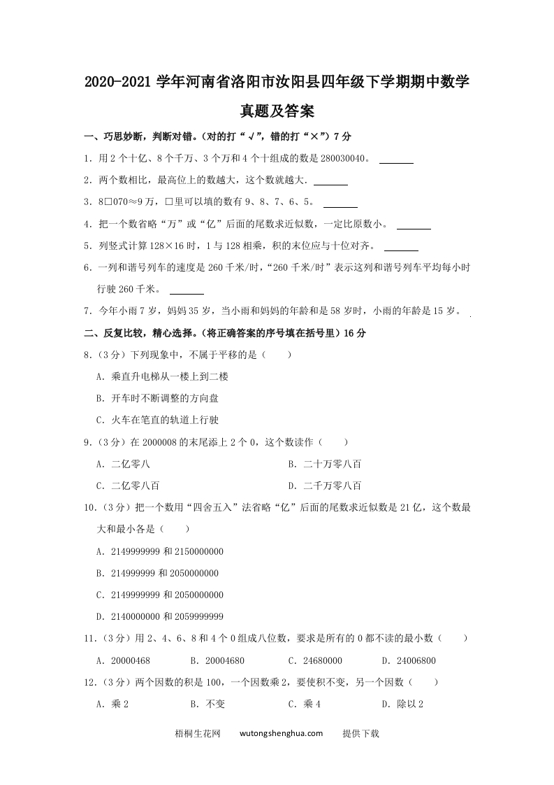 2020-2021学年河南省洛阳市汝阳县四年级下学期期中数学真题及答案(Word版)qweryou25年12月19日发布关注私信02736 第1页 / 共15页 该文档为免费文档,您可直接下载完整版进行阅读 © 版权声明文章版权归作者所有,转载请注明来源,未经允许请勿转载。本站内容均来自用户投稿或网络公开收集,本站只做展示,不对内容真实性负责。THE END考试考证 喜欢就支持一下吧点赞6 分享QQ空间微博QQ好友海报分享复制链接收藏