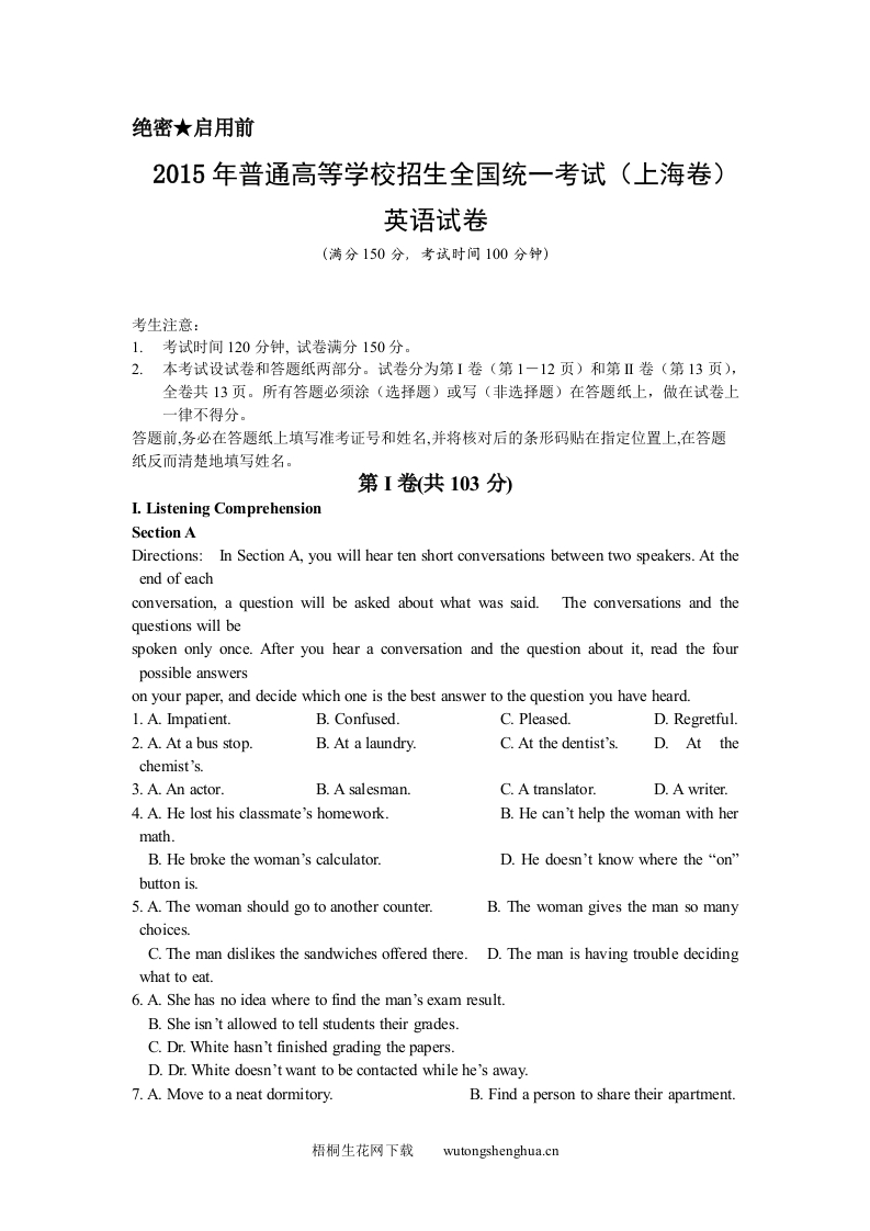 2015年上海高考英语真题试卷(word解析版,含听力原文)qweryou25年12月23日发布关注私信07010 第1页 / 共54页 该文档为免费文档,您可直接下载完整版进行阅读 © 版权声明文章版权归作者所有,转载请注明来源,未经允许请勿转载。本站内容均来自用户投稿或网络公开收集,本站只做展示,不对内容真实性负责。THE END考试考证 喜欢就支持一下吧点赞10 分享QQ空间微博QQ好友海报分享复制链接收藏